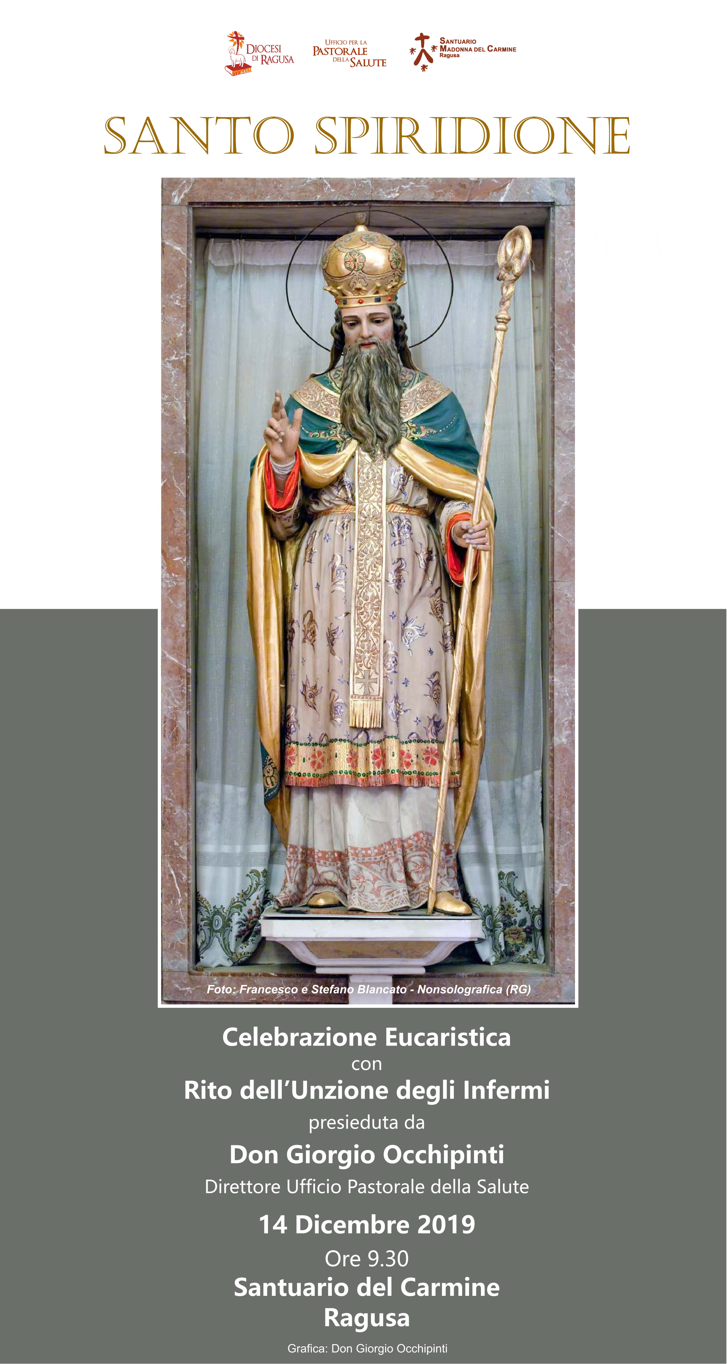 L’Ufficio per la Pastorale della Salute, organizza una S. Messa per i malati, presso il Santuario del Carmine a Ragusa. La celebrazione eucaristica, si svolgerà il 14 dicembre, alle 09:30, e sarà presieduta da Don Giorgio Occhipinti, direttore dell’Ufficio per la Pastorale della Salute, con il Rito dell’Unzione degli Infermi. Si svolgerà proprio nel giorno in cui si ricorda Santo Spiridione.