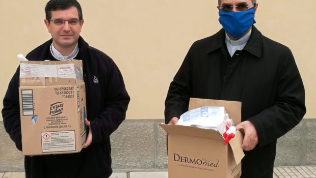Il vescovo consegna ai sacerdoti un kit di protezione