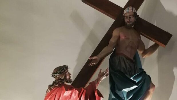Una celebrazione sobria ma intensa spiritualmente. Ieri sera, ricorrendo la memoria liturgica dell’Esaltazione della Santa Croce, la parrocchia di San Paolo Apostolo a Ragusa ha salutato la presenza di un nuovo simulacro all’interno della chiesa, simulacro raffigurante Gesù aiutato dal Cireneo. Dopo la Santa messa presieduta dal parroco, il sacerdote Mauro Nicosia, lo stesso padre Mauro ha proceduto alla benedizione del gruppo statuario realizzato grazie al sostegno economico arrivato dai componenti della comunità. Il simulacro richiama la quinta stazione della Via Crucis tradizionale, quando, cioè, Simone di Cirene, detto appunto il Cireneo, fu obbligato dai soldati romani ad aiutare a trasportare la croce del Cristo durante la salita al Golgota per la crocifissione. “Dobbiamo impegnarci noi stessi ad essere come il Cireneo – ha detto padre Mauro durante la benedizione – perché ci si possa aiutare l’un l’altro, a maggior ragione in questo momento storico così difficile e complicato. Ecco perché Cristo stesso diventa per noi Cireneo tendendo la mano verso di noi quando cadiamo. Ci fissa negli occhi amandoci e donandoci la salvezza”. Numerosi i fedeli presenti, nel rispetto delle norme antiCovid, alla benedizione. Il simulacro, frutto di un lavoro certosino e accurato, farà parte dei gruppi statuari che animano la Via Crucis con la processione del Venerdì Santo nel centro storico di Ragusa. “Quest’anno non è stato possibile tenerla per i motivi che sappiamo – dice ancora il parroco di San Paolo Apostolo – speriamo nella processione del prossimo anno a cui parteciperemo con il nostro gruppo statuario che va a integrare una stazione mancante della Via Crucis”.
