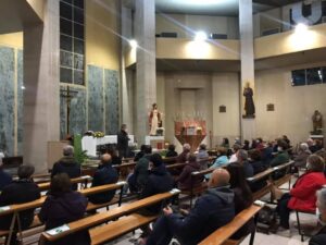 La Chiesa è stata piena al massimo della capienza, naturalmente nel rispetto delle prescrizioni anticontagio. Attenzione puntata soprattutto sulla nuova edizione del Messale romano in lingua italiana. L’utilizzo del nuovo Messale sarà obbligatorio in Italia a partire dalla domenica di Pasqua, il 4 aprile 2021, ma sarà possibile utilizzarlo da subito. La terza edizione del Messale in lingua italiana arriva a cinquant’anni dalla pubblicazione del primo Messale romano di Paolo VI. Questa ultima edizione del Messale presenta in realtà poche modifiche rispetto alla precedente seconda edizione (molto innovativa rispetto alla prima): nuove traduzioni dei testi latini e alcune aggiunte, alcune modifiche ai testi precedenti e nuove preghiere. Il nuovo Messale romano mantiene sostanzialmente invariata la struttura della precedente edizione. Si apre con una presentazione generale a cura della Conferenza episcopale italiana che contiene spunti, suggerimenti ed indicazioni su diversi aspetti liturgici e pastorali. Tra questi la possibilità di pregare il Padre Nostro con le braccia allargate e il divieto di utilizzare musica registrata e di inserire avvisi e preghiere devozionali dopo la Comunione. Nessuna modifica è stata apportata nelle parti recitate dall’assemblea tranne che nel Gloria, nel Padre nostro e nel “Confesso”, dove sono stati modificati alcuni vocaboli. “Molto interessanti – sottolinea il parroco, il sacerdote Marco Diara – le spiegazioni fatte da don Paglia su un aspetto che, molto spesso, si tende a trascurare. Le nostre celebrazioni per il 55esimo anniversario proseguiranno sabato quando si terrà, alle 18,30, la santa messa celebrativa del 55esimo anniversario”.
