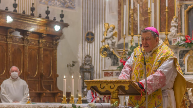 L’evento è iniziato con i saluti del parroco, don Salvatore Converso, che ha spronato la comunità a far fronte ai tempi avversi della pandemia ricordando San Paolo che, chiedendo al Signore di essere liberato dal dolore e dalle contraddizioni della vita, riceveva in risposta le parole «Ti basta la mia grazia; la forza, infatti, si manifesta pienamente nella debolezza» (2Cor 12,9). Subito dopo ha preso la parola il sindaco, Francesco Aiello, che ha ricordato come la città sia sempre gioiosa nell’incontrare un cittadino onorario tanto apprezzato quale è monsignor Ferraro.