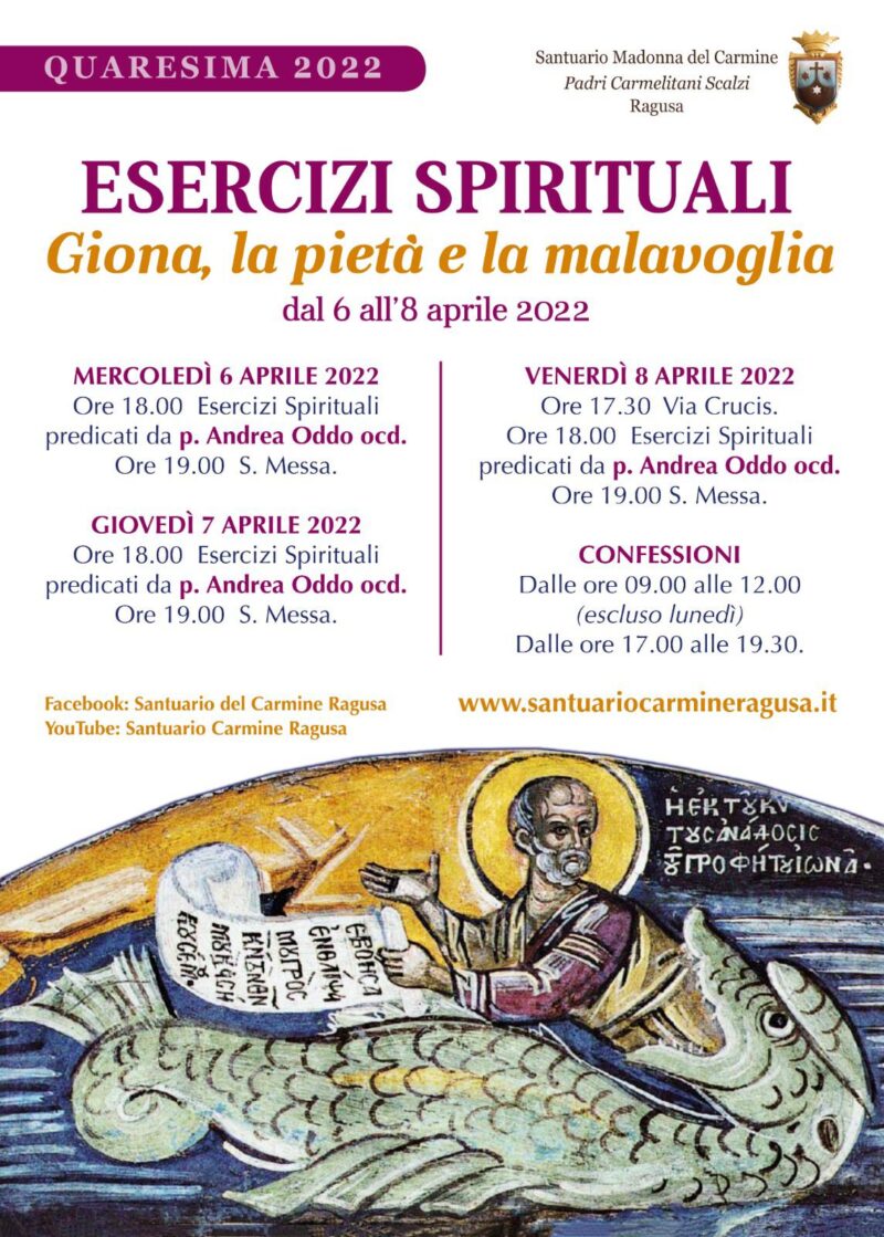 Il Santuario Madonna del Carmine di Ragusa organizza tre giorni di esercizi spirituali dal titolo Giona, la pietà e la malavoglia.