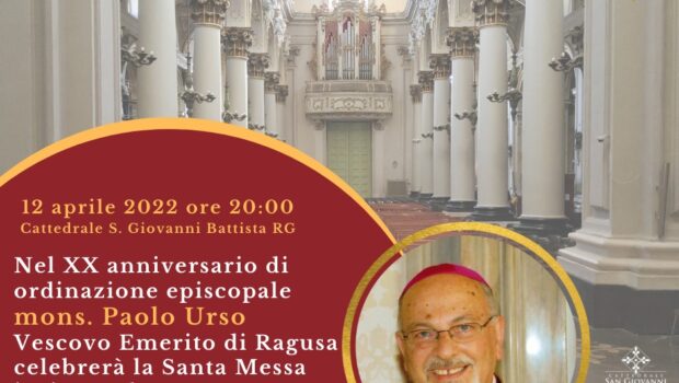 Oggi, 12 aprile, in occasione del suo ventesimo anniversario di ordinazione episcopale, monsignor Paolo Urso, vescovo emerito di Ragusa, celebrerà, alle 20 in cattedrale, la santa messa insieme al vescovo Giuseppe La Placa.
