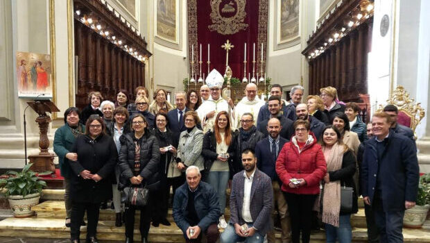 In maniera quasi profetica, quest’anno il nostro Pastore, monsignor Giuseppe La Placa, ha fortemente voluto presenziare, nella Cattedrale di San Giovanni Battista, a una funzione altamente simbolica, durante la quale ha personalmente voluto incontrare la nostra associazione per consegnare a ciascun presidente parrocchiale le tessere associative. Questo è stato un momento di grande gioia e condivisione e, come ha sottolineato il Presidente diocesano Saro Schininà, «Poter riprendere il cammino dalla nostra cattedrale, insieme al nostro Vescovo e al popolo di Dio radunato attorno alla mensa eucaristica, è un incoraggiamento ed una responsabilità per ciascun socio a vivere “in forma comunitaria e organica e in diretta collaborazione con la gerarchia, per la realizzazione del fine generale apostolico della Chiesa». Il Vescovo ha avuto parole di sostegno per la nostra associazione, ci ha esortati a non abbassare mai la guardia e a essere testimoni di speranza nella quotidianità della vita. Gli anni appena trascorsi sono stati anni difficili, che hanno reso difficoltoso il cammino associativo per via della mancata possibilità di incontrarci. L’icona biblica che accompagna il nuovo anno associativo è “Andate dunque” (Mt 28,16-20) in riferimento al brano che conclude il Vangelo di Matteo quando tutto sembrava perduto, quando la sfiducia sembrava prevalere e i discepoli devono accettare la vicenda incomprensibile della Passione. L’incontro con Gesù apre le porte dei discepoli alla speranza e oggi invita noi tutti a non avere paura, ad avere fede e a sperare sempre nel domani rinnovando con fiducia il nostro “Si”. E nel ripartire di quest’anno ci auguriamo che ciascuno si renda protagonista nell’incontro con Gesù e con l’altro, in una esperienza sinodale che è di tutta la Chiesa.
