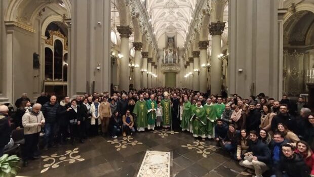 Il tema scelto per quest’anno “L’amore tutto spera”, ha aiutato le 200 coppie di fidanzati presenti e le 50 coppie di sposi che, come animatori, li hanno accompagnati nei percorsi interparrocchiali di preparazione alle nozze, ad entrare nel clima del Giubileo. Attraverso la lettura di salmi e preghiere, nonché attraverso delle testimonianze, i fidanzati hanno riflettuto sull’importanza di dare orizzonti di eternità al loro Amore e di affidare a Cristo paure e attese, buttando al cielo l’ancora della Speranza che non delude! “Nel vostro Amore- ha detto Mons. La Placa ai fidanzati presenti “risplende il progetto di Dio che vi ha fatti distinti ma non distanti, un progetto che, attraverso il sacramento del Matrimonio, è apertura al mistero delle nozze eterne”. Il momento di riflessione e la santa messa sono stati animati dalla corale della Cattedrale guidata dal maestro Giovanni Giaquinta.