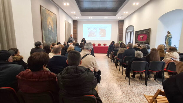A corollario dell’evento, anche il rettore del Santuario, a fine incontro – ammirato e grato alla relatrice per.il profondo interesse creato – aggiunge alcune note distintive sulla scelta cruda e salvifica della spoliazione di ogni bene terreno da parte di un Francesco-Sole che, «mentre ci risveglia dentro, e ci scuote, e ci fa tremare perla nostra indegnità… nel contempo ci sprona, ponendoci davanti l’esaltazione di quella vissuta povertà che diventa portatrice di una possibile reale felicità evangelica che viene ad assumere le forme di una riconquista della nostra dignità piena, per salvare noi stessi , e con noi il mondo intero».