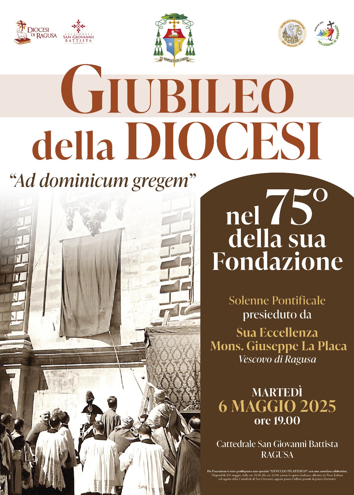 È festa per i 75 anni dell’erezione canonica della Diocesi di Ragusa. Una Chiesa dalla storia ancora giovane ma che brilla per i tanti esempi di santità laicale e sacerdotale che ha saputo offrire. Il Giubileo per i 75 anni della Diocesi, che si innesta nel Giubileo della Chiesa universale indetto da Papa Francesco, è l’occasione migliore per riscoprire la storia e, ancor più, per proiettarsi nel futuro di una missione tutta da scrivere e da scoprire. Una missione che potrà nutrirsi dei frutti del percorso sinodale, dal quale tutta la Chiesa si attende una nuova primavera in termini di rinnovamento della pastorale e della catechesi per muoversi lungo le nuove frontiere della carità, nell’ascolto di una realtà in continua trasformazione.