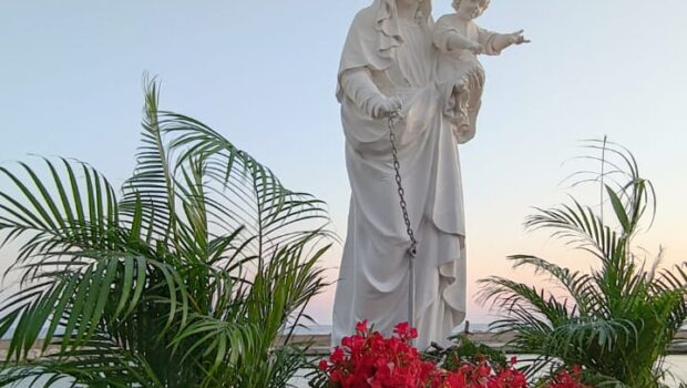 Festa al porto turistico di Marina di Ragusa. Il Vescovo, mons. Giuseppe la Placa, ha benedetto la statua della Madonna di Portosalvo, posta in testa al molo di levante, che da oggi accompagna spiritualmente i turisti ed i natanti che entrano o escono dal porto.