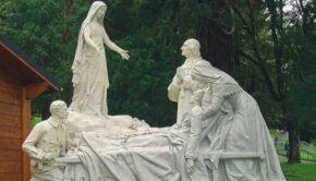 Per chi è stato pellegrino al Santuario di Lourdes non può non ricordare il gruppo scultoreo in marmo di Carrara, opera dell’artista francese Jules Déchin, raffigurante la Vergine Maria “Salus infirmorum”