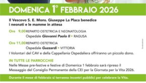 Anche quest’anno, quindi, gli uffici pastorali della Diocesi di Ragusa, Famiglia, Salute, IRC, coinvolgendo la Consulta per le Aggregazioni Laicali, i Cappellani degli Ospedali di Ragusa don Giorgio Occhipinti e di Vittoria don Giuseppe Riggio, i Consultori Familiari, il Centro Aiuto alla Vita di Ragusa e l’associazione Nati per Crescere hanno invitato le comunità del territorio ibleo ad un impegno che tuteli la vita e metta al centro i bambini.